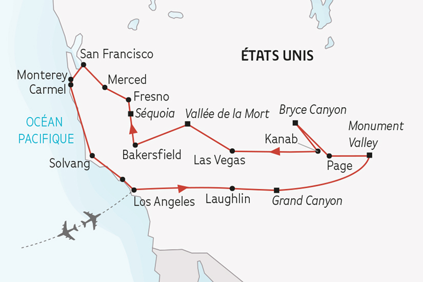 « L'Ouest est plus qu'une direction. C'est un lieu où s'étendent les rêves. » Wallace Stegner. Si la croisière dans la sublime baie de San Francisco est évidemment un des moments forts de ce voyage exclusif dans l'Ouest américain, l'itinéraire à travers la Californie, l'Arizona et l'Utah ne manque pas de piment. Los Angeles, le Grand Canyon, Monument Valley, Bryce Canyon, Las Vegas, la Vallée de la Mort...: autant d'étapes inoubliables sur des sites mythiques qui, chacun, à lui seul, mérite le voyage. Autant dire que vous allez vous régaler !